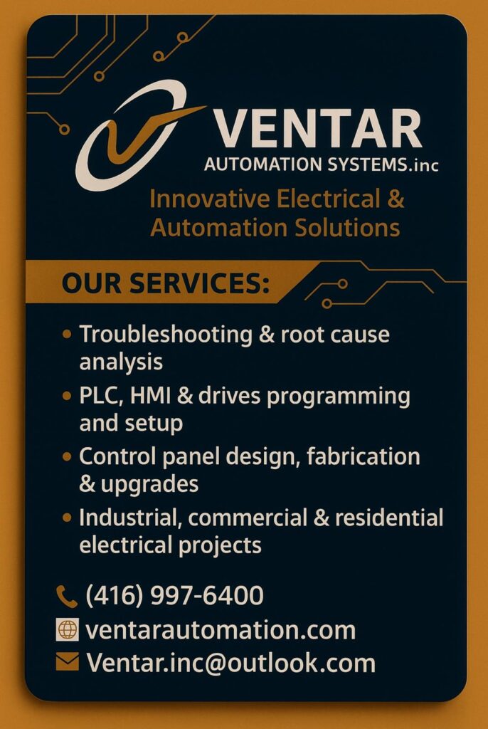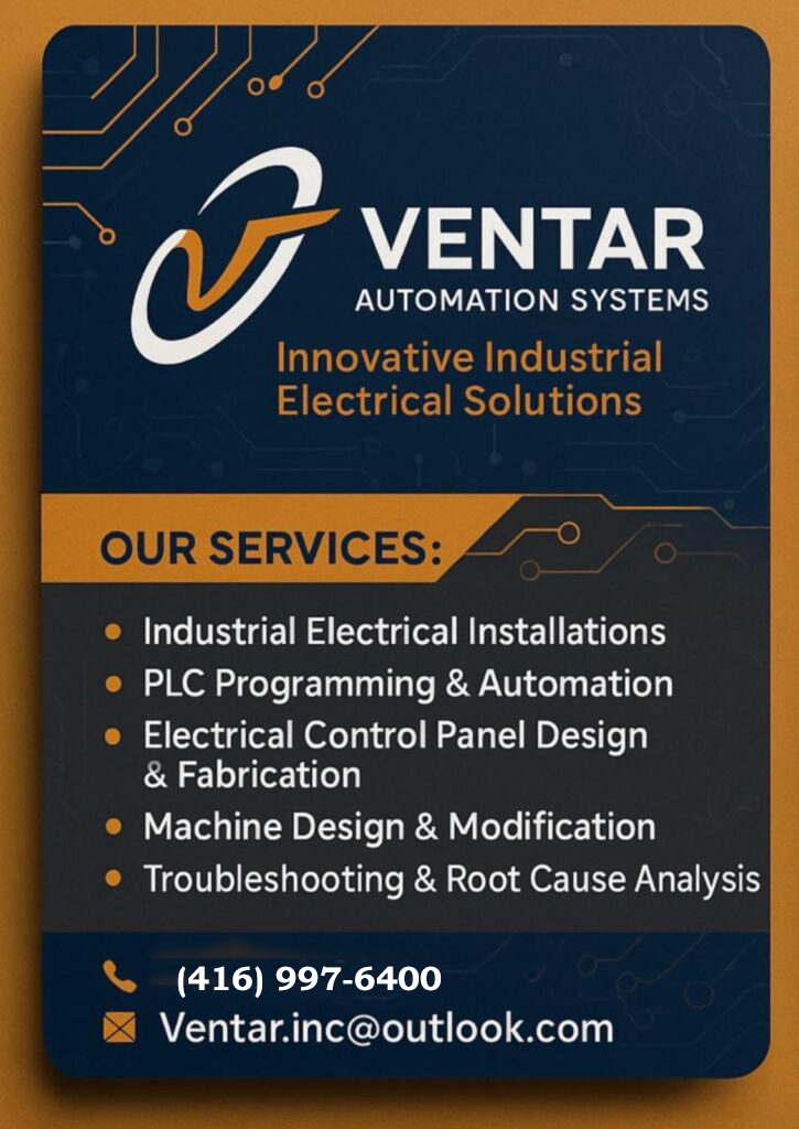 At Ventar Automation Systems, we specialize in delivering innovative industrial electrical solutions tailored to the needs of Canadian industries. With years of hands-on experience, our team combines technical expertise and practical insight to provide reliable, efficient, and future-ready automation services.